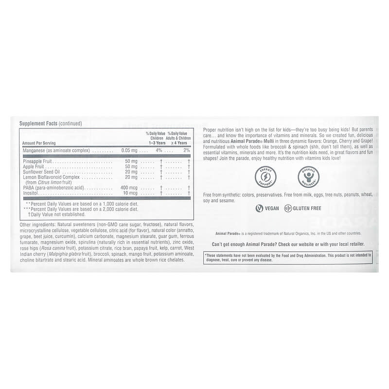 Nature's Plus Animal Parade Children's Chewable Multi-Vitamin Assorted Flavors 180 tabs